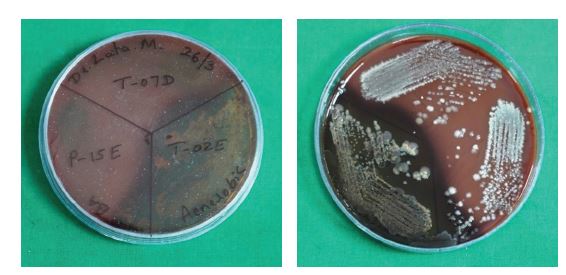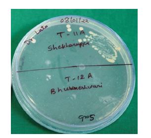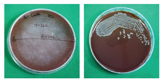 Samples received in RTF were vortexed at 4000 rpm for 10-15 minutes, diluted at a 1:10 ratio, and subsequently inoculated onto blood agar (BA) medium. Blood agar, specifically Brucella agar supplemented with hemin and vitamin K, served as an enriched medium. One plate was incubated aerobically, and the other anaerobically in an anaerobic jar for 48 to 72 hours at 37 0C.